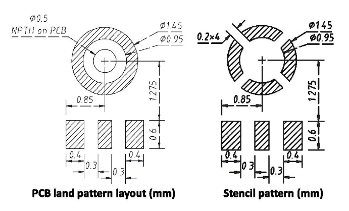 ● 推荐的 PCB 焊盘布局和钢网图形