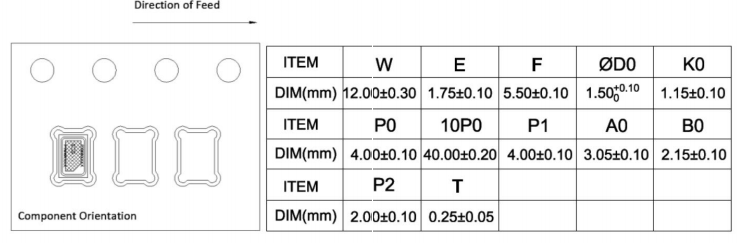 3) 载带和卷盘符合EIA-481 标准;