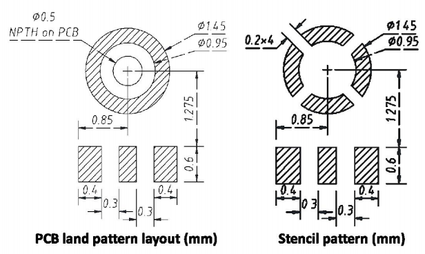 ● 推荐的 PCB 焊盘布局和钢网图形