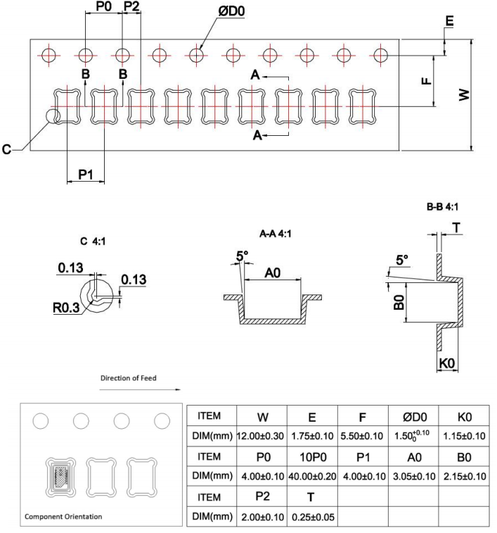 3) 载带和卷盘符合EIA-481 标准;
